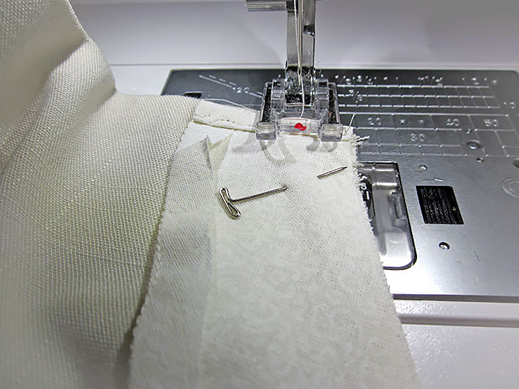 - Re-folding all the original tiny hems, fold the side facings into position over the top facing.