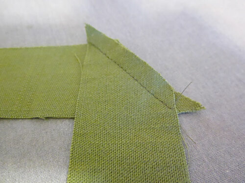 - Press open the seam allowances and clip away the “dog ears” extending beyond the strip.