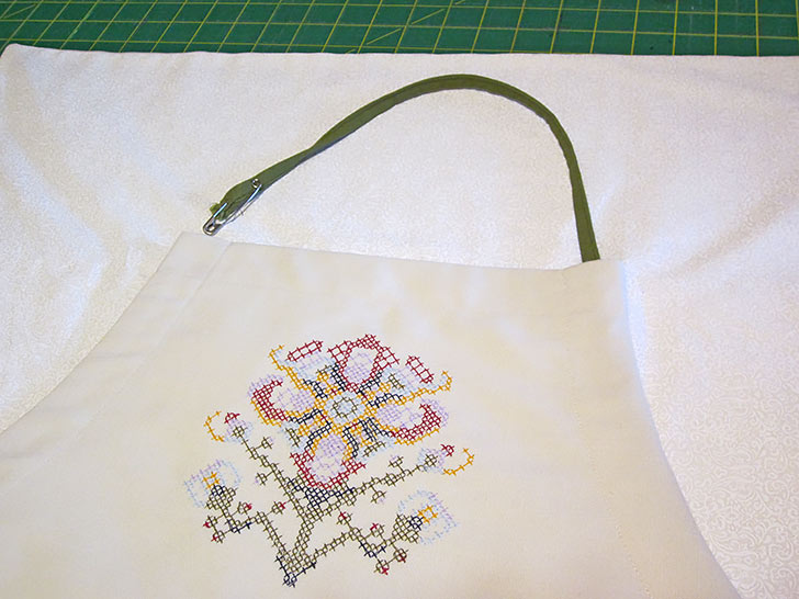- Remove the hoop from the machine. Remove the stitched apron panel.