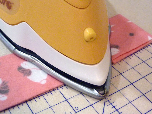 - Fold back and press ½” along each of the four sides of the flannel.