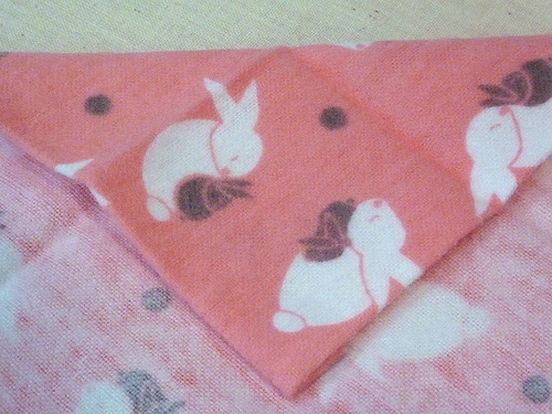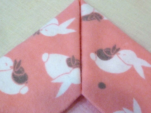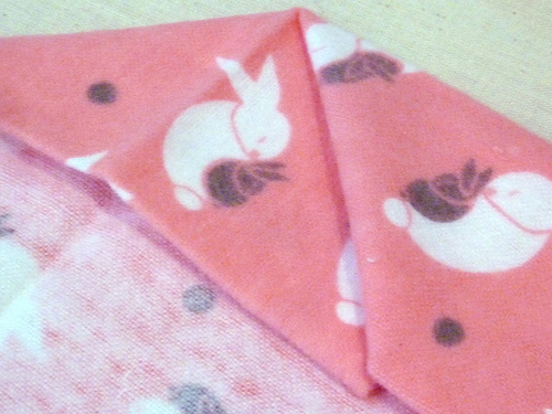 - Fold in this straight edge of the flannel corner to meet the corner point of the embossed plush.