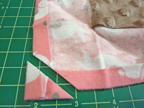 - At the corner point of the flannel, trim away a similar triangle, but only about 1″, creating a straight line