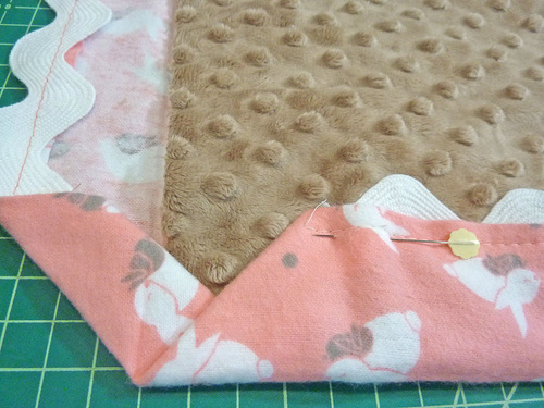 - Stop the basting at the end of the rick rack; don’t continue onto the flannel.