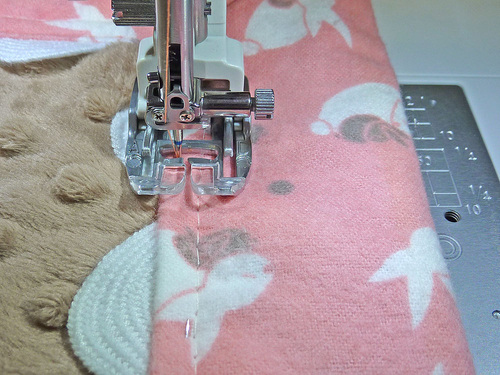 - Machine baste the rick rack in place along each side, running the seam close to the raw edge of the folded-in flannel.