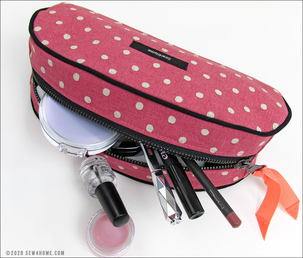 This is a cute case!! I think it would work for sewing notions too. Regarding the zipper pull, I would suggest to stitch those ribbon corners before adding it to the pull. And I’d add it to the pull after the case has been constructed, so it won’t be in the way when sewing the zipper in.