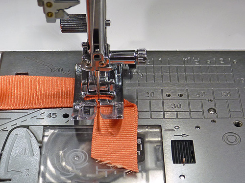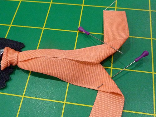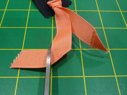 - Trim away the excess so the raw edge is flush with the side of the ribbon.