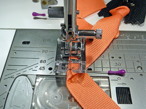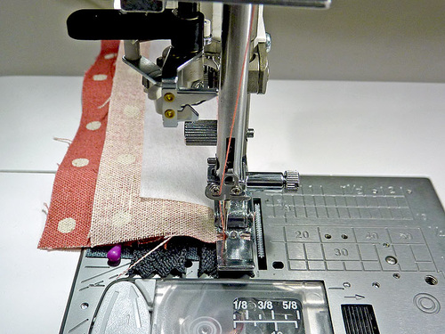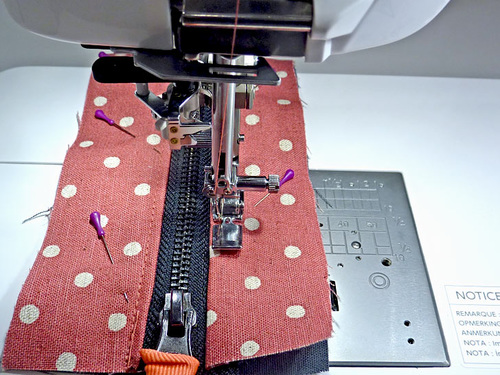 - Using a Zipper foot, stitch the length of the strip, running the seam as close to the zipper teeth as possible.
