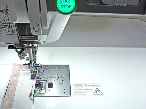 - Then re-position to stitch across the top and down the side, pivoting at the corner. You are simply stitching a small triangle, so really – the order of the sides is up to you.