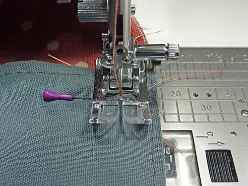 - Using an approximate ½” seam allowance, stitch across the two short seams through all the layers. We say “approximate” because your goal is to stitch just beyond the zipper stops at the top and bottom. This may be slightly wider or narrower than the standard ½”.