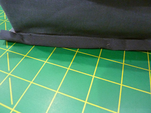 - We chose to wrap the inner seam allowances with bias binding in a color to match the lining fabric.