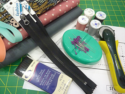 - ONE 9″ zipper; we recommend a chunky metallic zipper