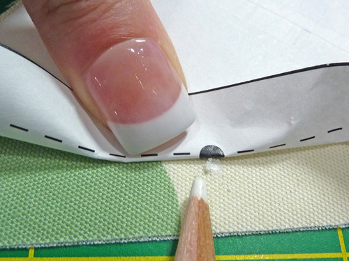 - Transfer the marking dot from each pattern piece onto each appropriate fabric piece.