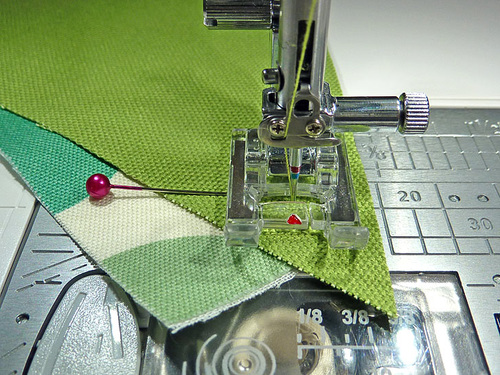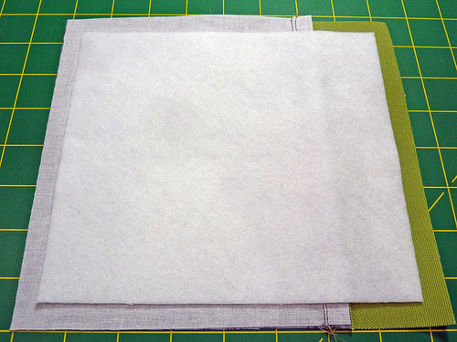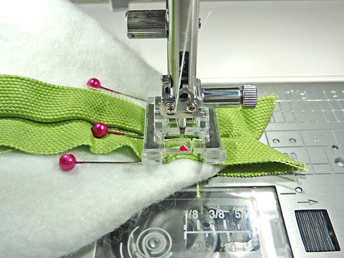 - Stitch across the top through all three layers, using a ¼” seam.