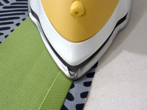 - Then press the seam allowance together and towards the print panel.