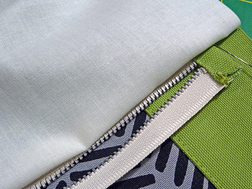 Insert the zipper between the exterior and the lining