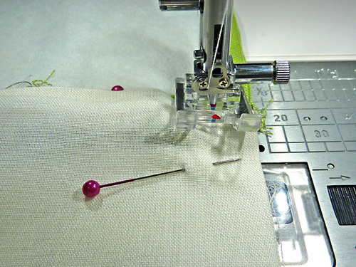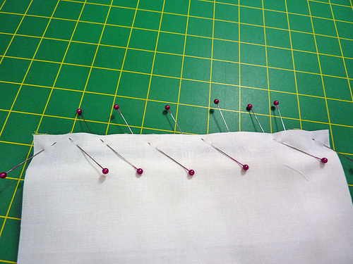 - The top raw edge of the lining panel should be aligned with the other layers. Pin well.