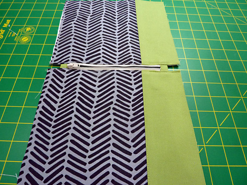 - Stitch through all three layers along this second side of the zipper, again using a ¼” seam.