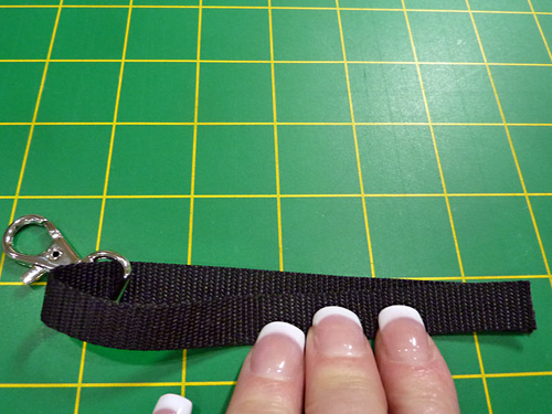 - Flip the loop so the seam allowance is now on the inside. Rotate it up towards the swivel hook. Push the seam as close to the hook as possible.