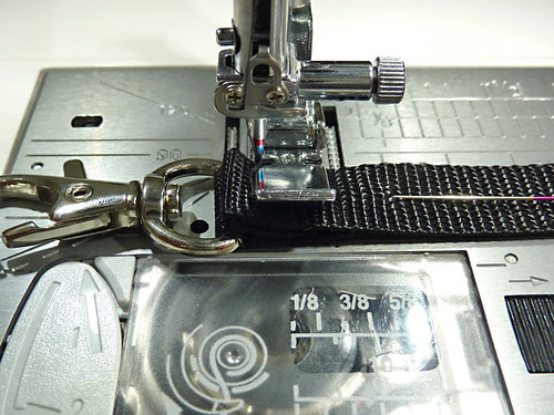 - Stitch across the webbing, running this seam as close to the hook as possible. Again, we recommend a double or triple stitch.