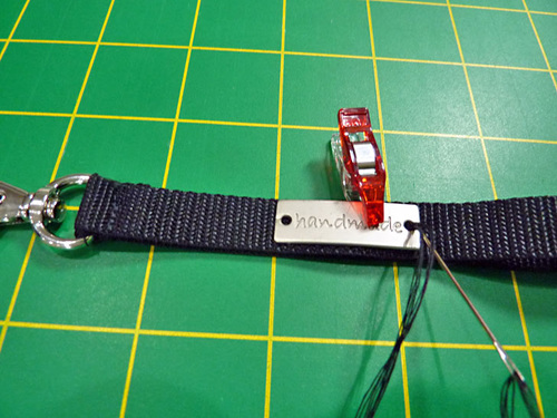 - Securely hand stitch the label in place. Remember, you are stitching through just one side of the loop… stitch through both sides and you can’t get your hand through!