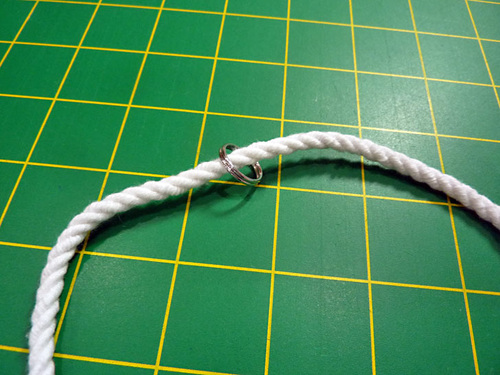 - For Pouch Style B-Horizontal Cut, slip the thin cotton twisted cord through the split ring.