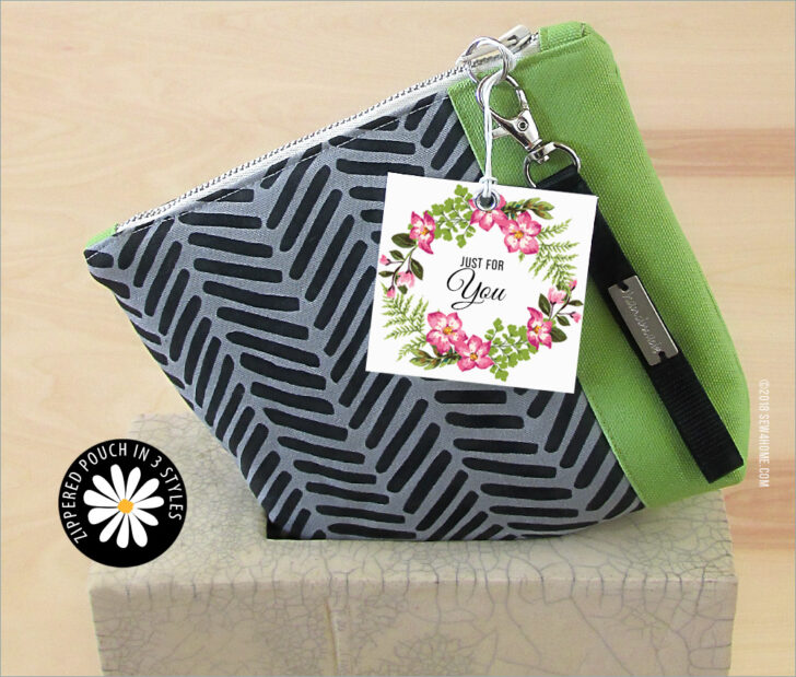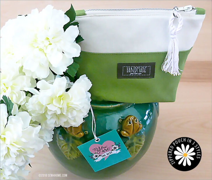 We show you all the steps for a tabbed-end zipper that is cut to an exact width for the top opening. The tabs are completely finished so the zipper can sit slightly above the side seams with a tiny gap at each end. You may have seen this same technique on zipper pouches you’ve purchased at the store. It’s a great option to reduce bulk and make the pouch easier to turn right side out.