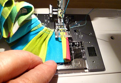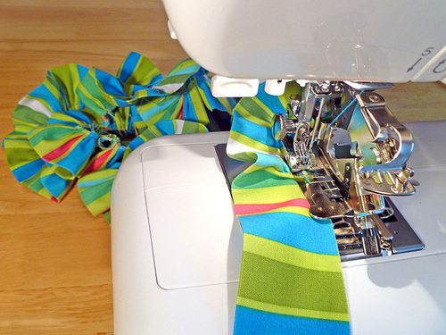- Cut off any excess ruffle beyond the 2½”, then hem this end in the same manner as you hemmed the other end above. If you’ve used a ruffle attachment, you’ll need to switch back to your regular presser foot to create this hem.