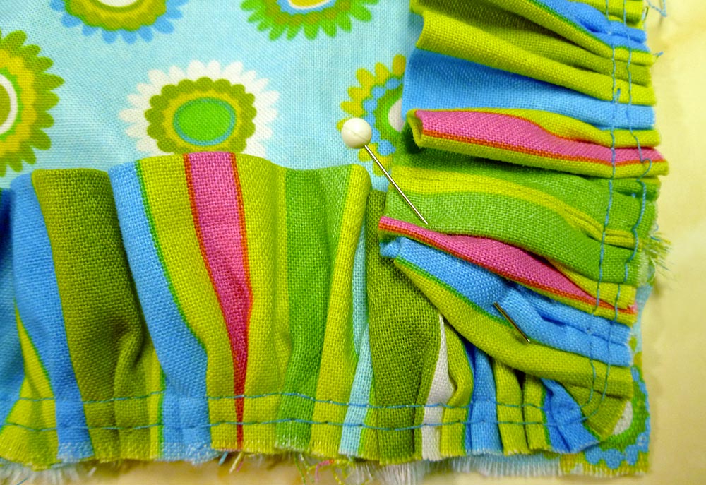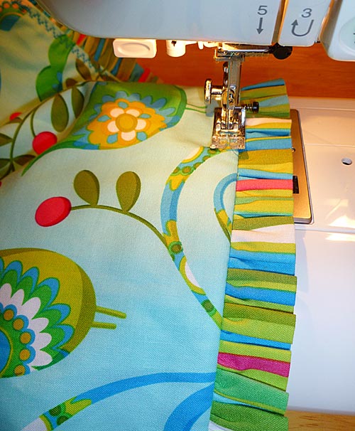- Machine baste the ruffle in place around all four sides.