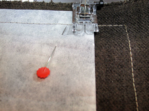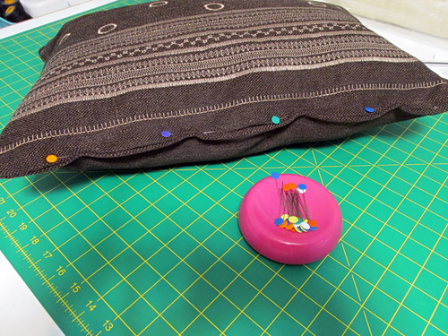 - Pin the stabilizer over the main stitching area of the pillow front panel.
