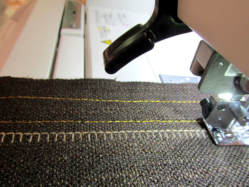 - Replace the bobbin thread with the contrasting thread; in other words, both the top and the bobbin should now have the same heavyweight contrasting thread.