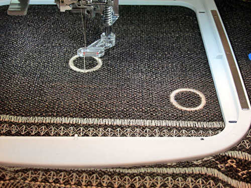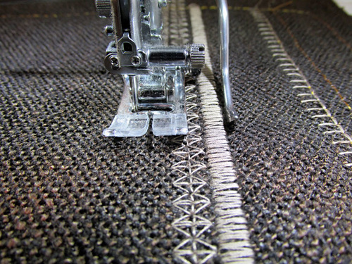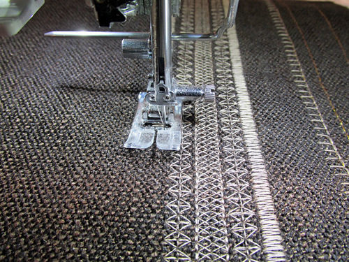- Re-set the machine from embroidery to decorative stitching. Choose the proper stitch and sew this final row in the same manner as above for the previous rows.
