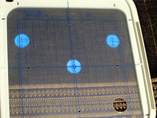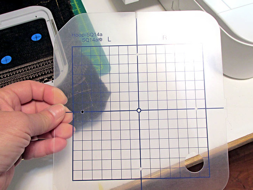 - Select and prepare to hoop the front panel. The Janome hoops come with a handy grid insert to make positioning easier.