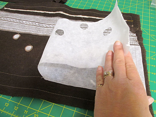 - From the tearaway stabilizer, cut ONE approximate 20” x 12” rectangle – you want a large enough piece to cover the main area of decorative stitching and embroidery.