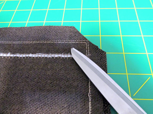 - Gently push out the trimmed corners from the inside to make nice, square corners on the outside. Use your finger or a blunt-end tool, like a large knitting needle, chopstick or point turner.