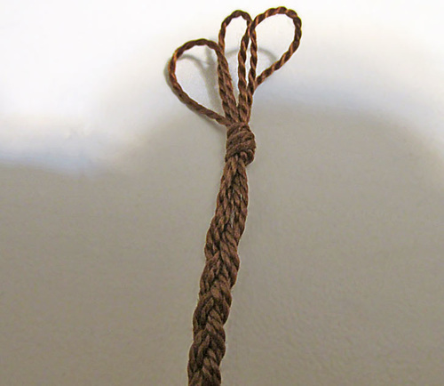 - Continue braiding until you have the full, approximate 12” length. Knot at the bottom with the needle and thread.
