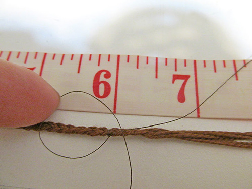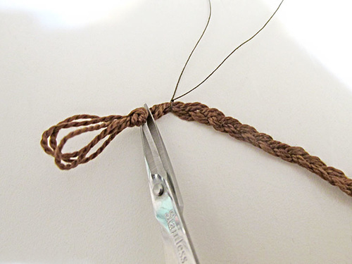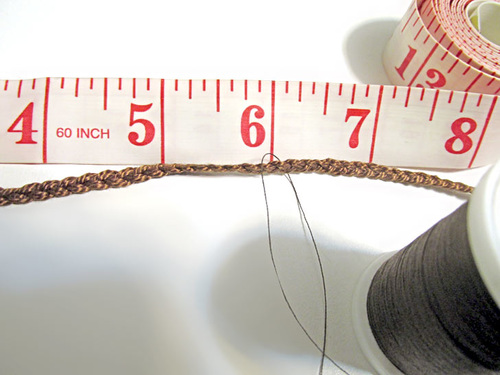 - Using the hand needle and thread, knot the braid at about 6” to keep if from unraveling.