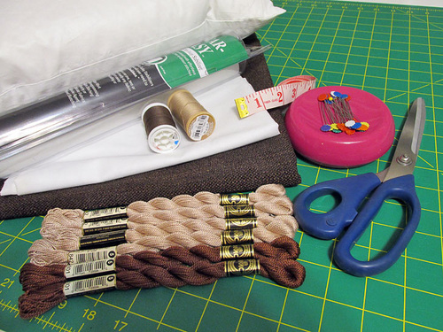 - Heavyweight thread in a contrasting color for the decorative stitching and embroidery; we used a 40wt cotton in light taupe