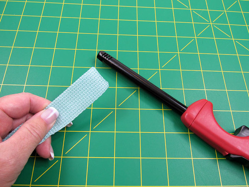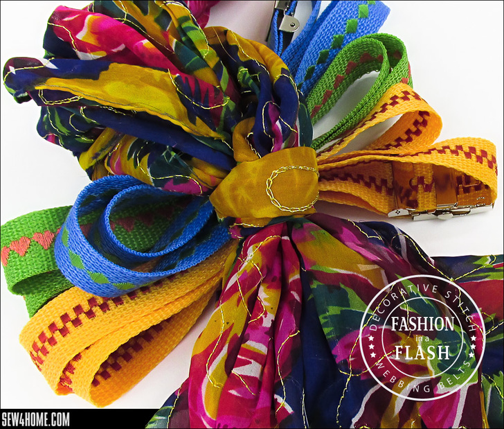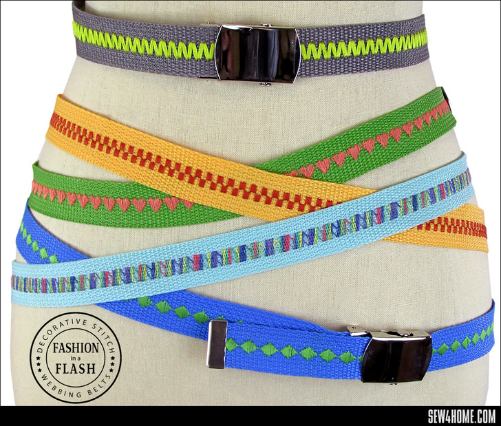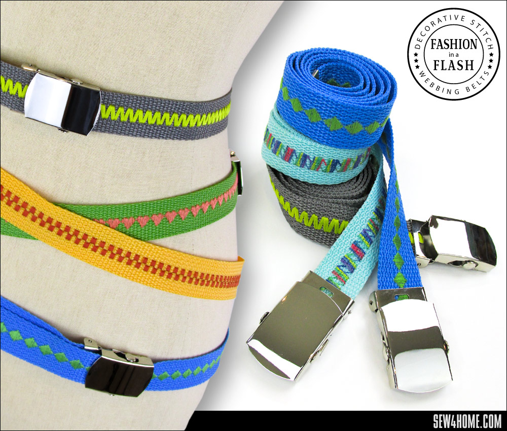 The base of our belts is 1” Dritz Belting. It’s 100% polypropylene and comes in lots cool colors. Try this option or shop for your own webbing options in-store or online. To this we added a single line of decorative stitching down the center for the perfect fashion kick.
