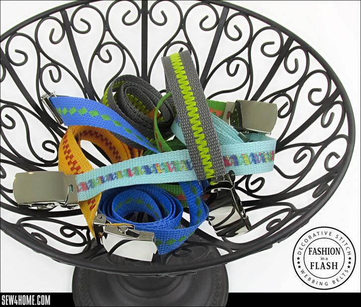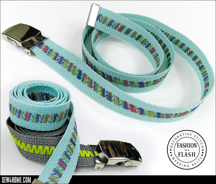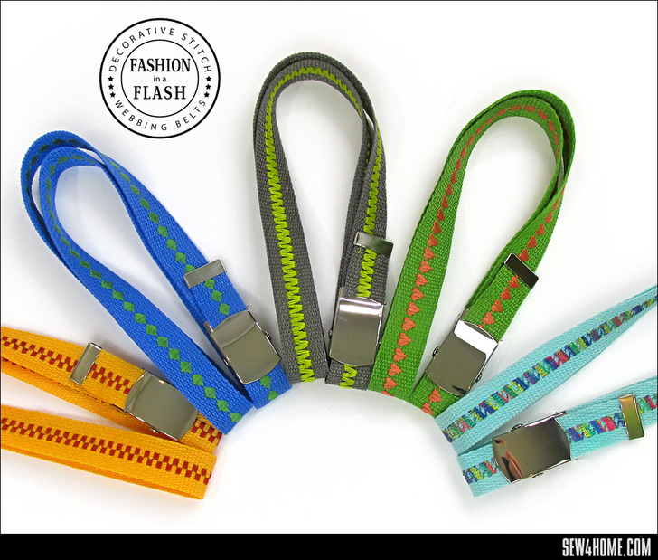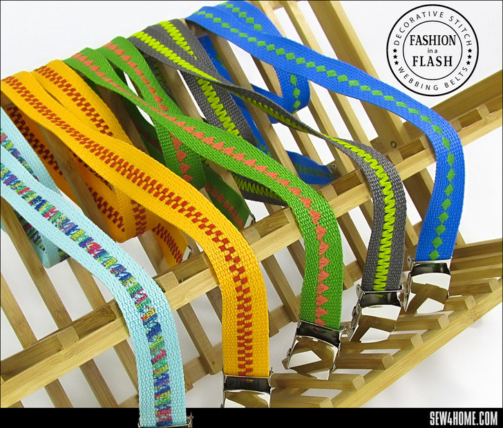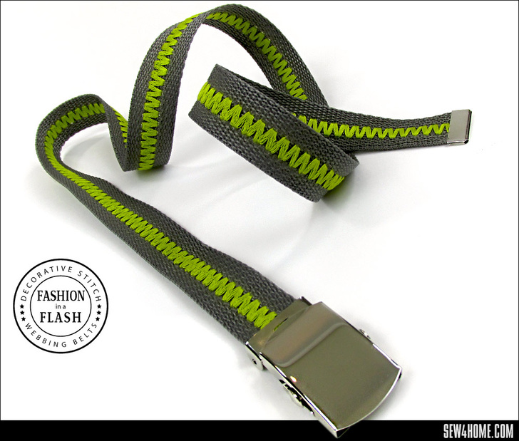 As with any time you use decorative stitching, you want to try a variety of possibilities prior to starting your project. Test the pattern as well as the stitch width and length, and don’t forget to experiment with different weights of thread. It all makes a difference, and the only way to tell for sure if it’s right is to test, test, test. It’s good to do your testing on a scrap of the actual belting if possible in order to get the best idea of color contrast.