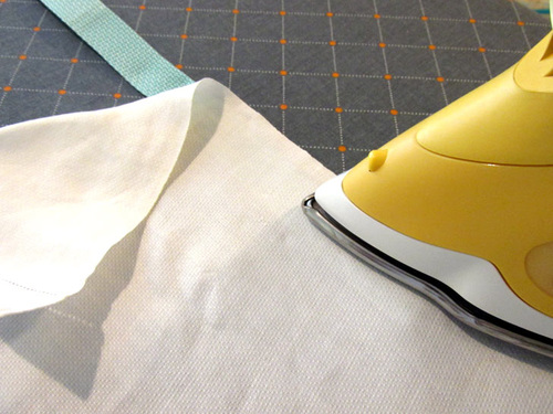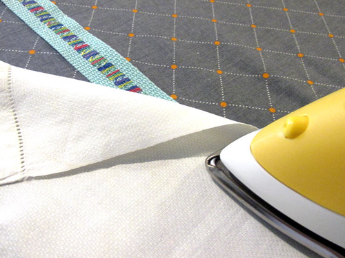 - When finished, again using the pressing cloth, iron and steam the belting.