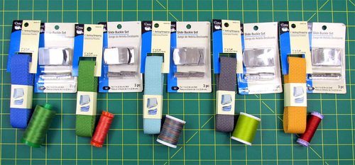 NOTE: The Dritz option is a great place to start, but you can also search online, using the term “slide buckle set” or “military buckle” for additional options. - Contrasting thread for decorative stitching; see our list of thread types above