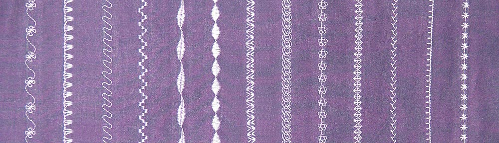 First, a little nomenclature. Some people refer to decorative stitches as “embroidery stitches.” While some of them do look like lines of hand embroidery, in the sewing machine world, “embroidery” always refers to the stitching done by an embroidery machine, using a special carriage and hoops. Decorative stitches are ones you can sew out just like a regular stitch.