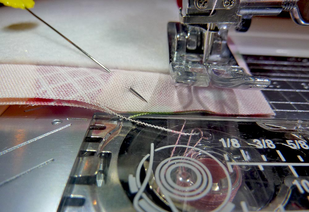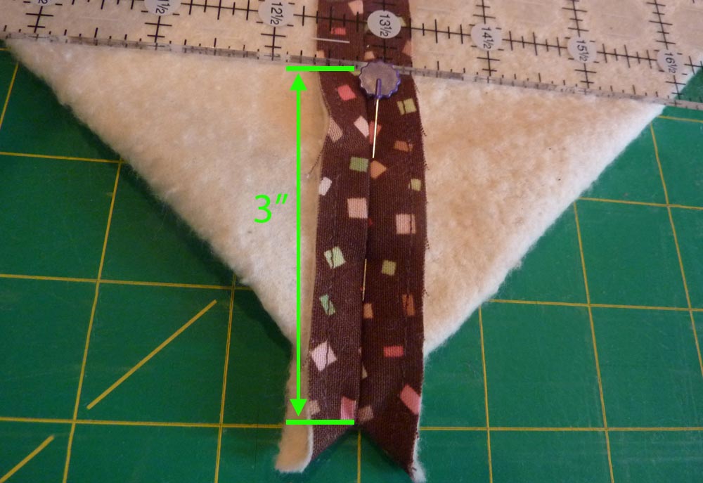 - Insert the raw end so it is at least 1½” below the top folded edges. Pin in place through all the layers.