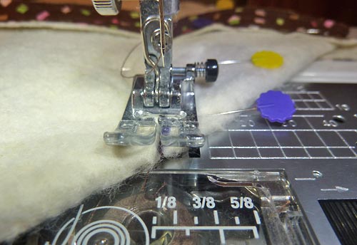 - Remember that the heavyweight fusible interfacing for the exterior is cut back ½” to stay out of the seams and make them less stiff. Therefore, you will be stitching right along the edge of the interfacing, which makes it easy to keep your seam nice and straight.