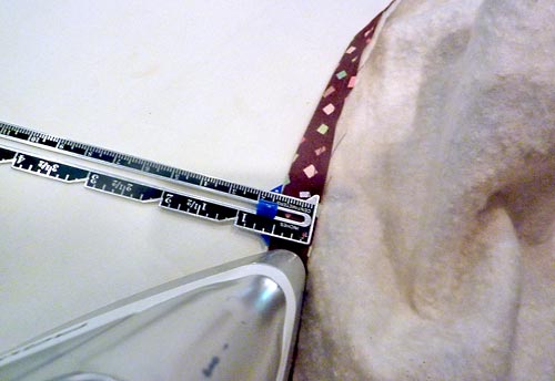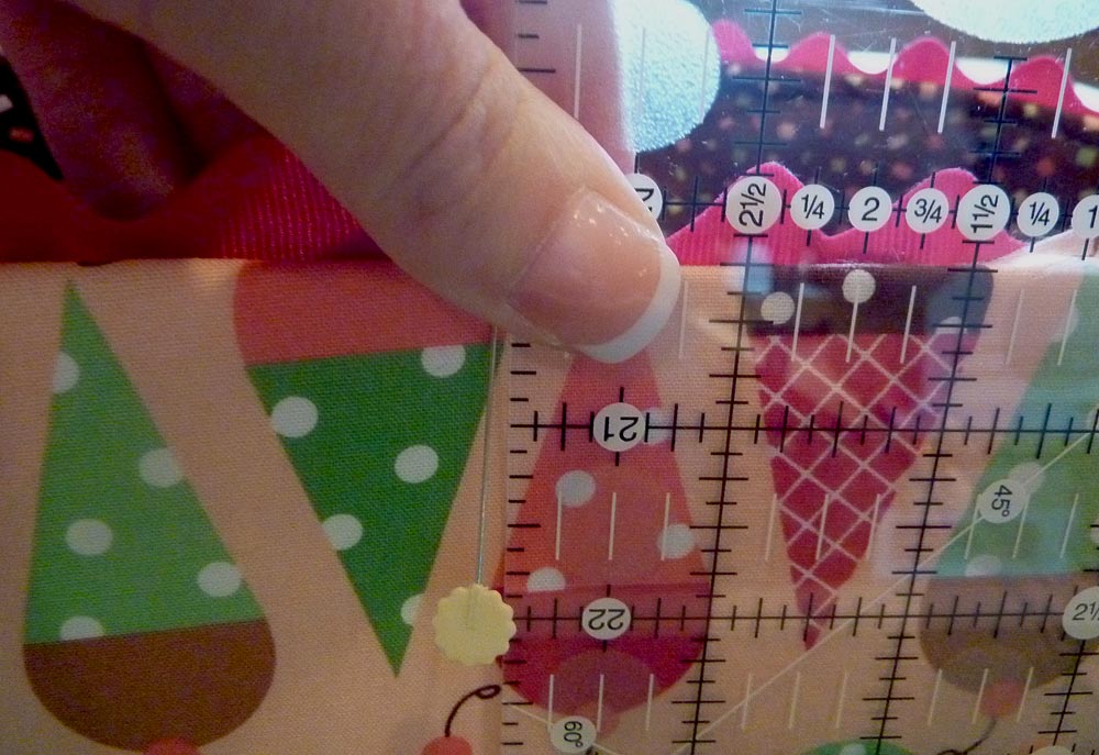 - We took the time to make sure our rick rack was even all the way around, checking it with a see-through ruler. Pin in place all the way around.