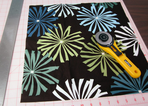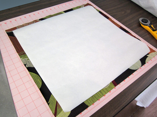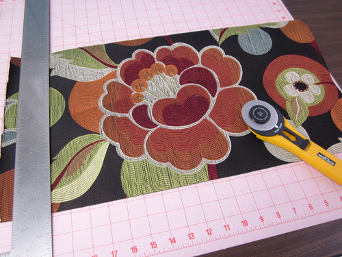 - Or, we often like to cut a pattern from tissue paper or other semi-transparent paper in order to really be able to see the motif within a “frame” and get the very best cuts possible. When you have your perfect position, lay a see-through ruler along the edge of the paper and cut with a rotary cutter.