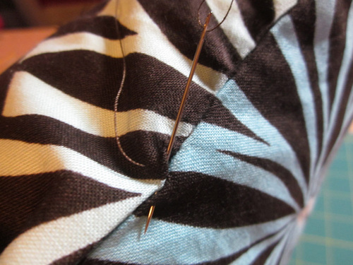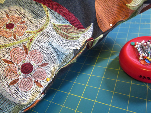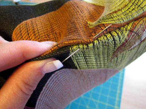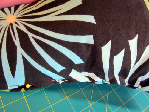 - Turn under the raw edges of the opening used for turning so they are flush with the sewn seam. Pin closed.