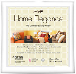 - One 16″ x 16″ Fairfield Home Elegance™ pillow form, available at the Fairfield World Factory Store, as well as Jo-Ann.com