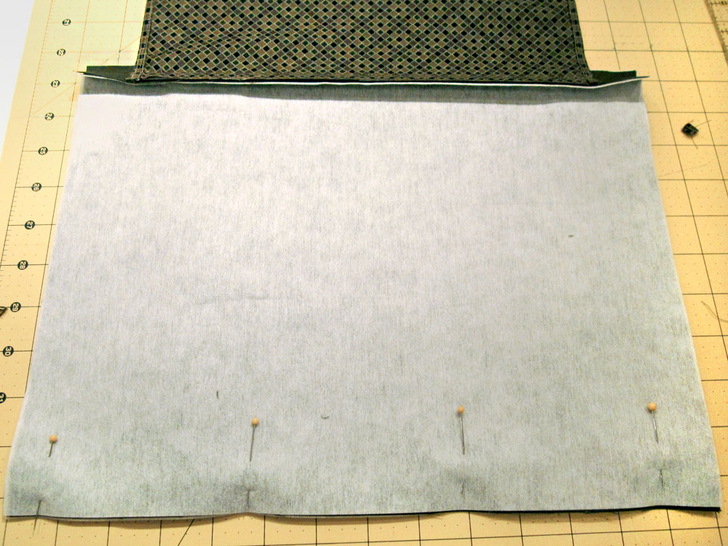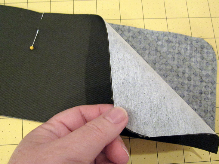 - Following manufacturer’s instructions, fuse the interfacing to the wrong side of each exterior panel (the two rectangles and the flap).