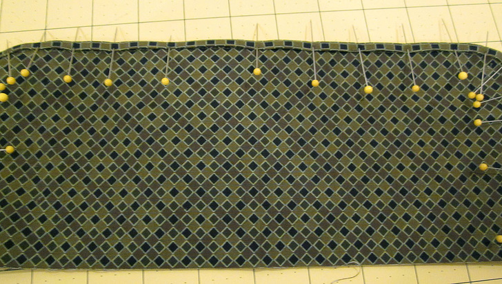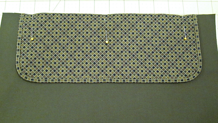 - Place the interfaced flap exterior and the flap lining WRONG sides together, matching the raw edges all around. Pin in place.